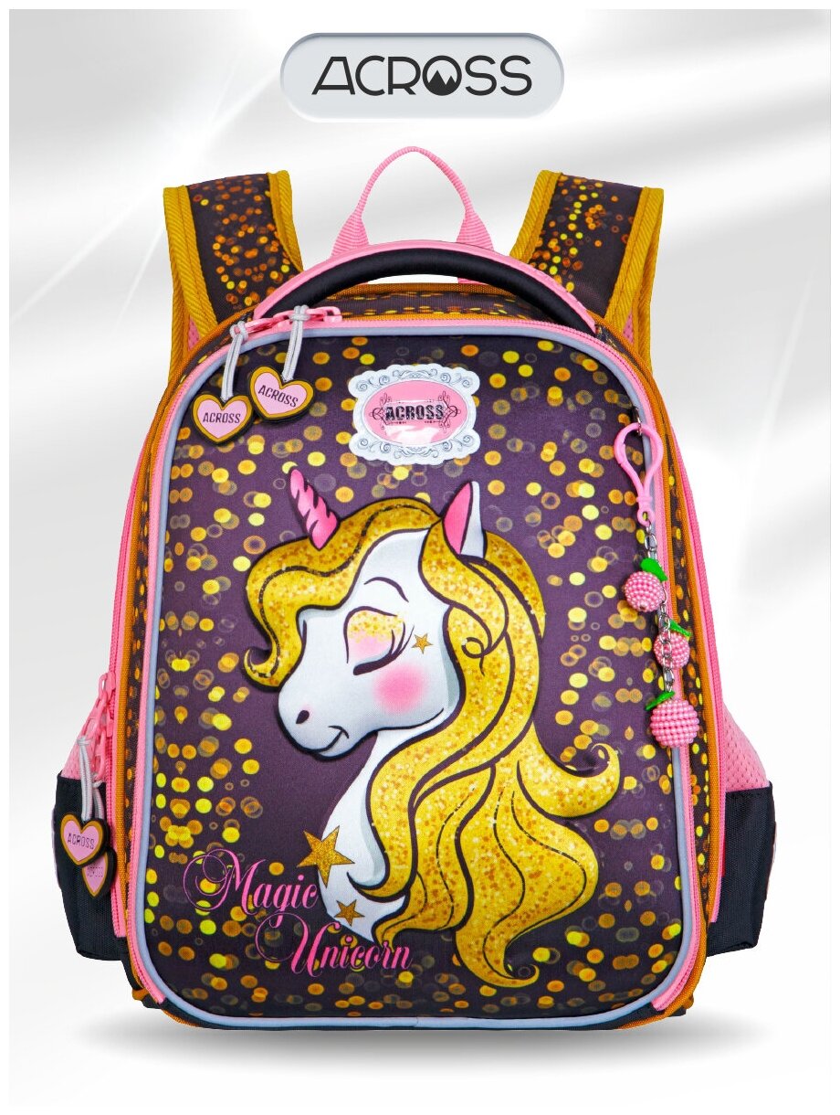 ACROSS/Школьный ортопедический ранец для девочки ACROSS 22-392-08/портфель в школу +пенал+мешочек для обуви+ брелок в подарок информация: