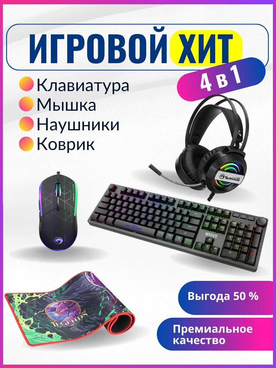 10 цен на PC Игровой набор MARVO: клавиатура KG954, гарнитура HG8902, проводная мышь M115, ковер G36 (XL), ПК