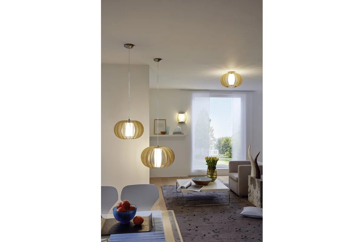 Подвес STELLATO 1, 1х60W (E27), Ø400, H1300, сталь, никель мат. /дерево, стекло, клен, белый