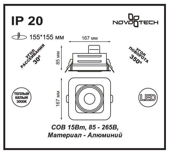 Встраиваемый светодиодный светильник Novotech Gesso 357580 информация: