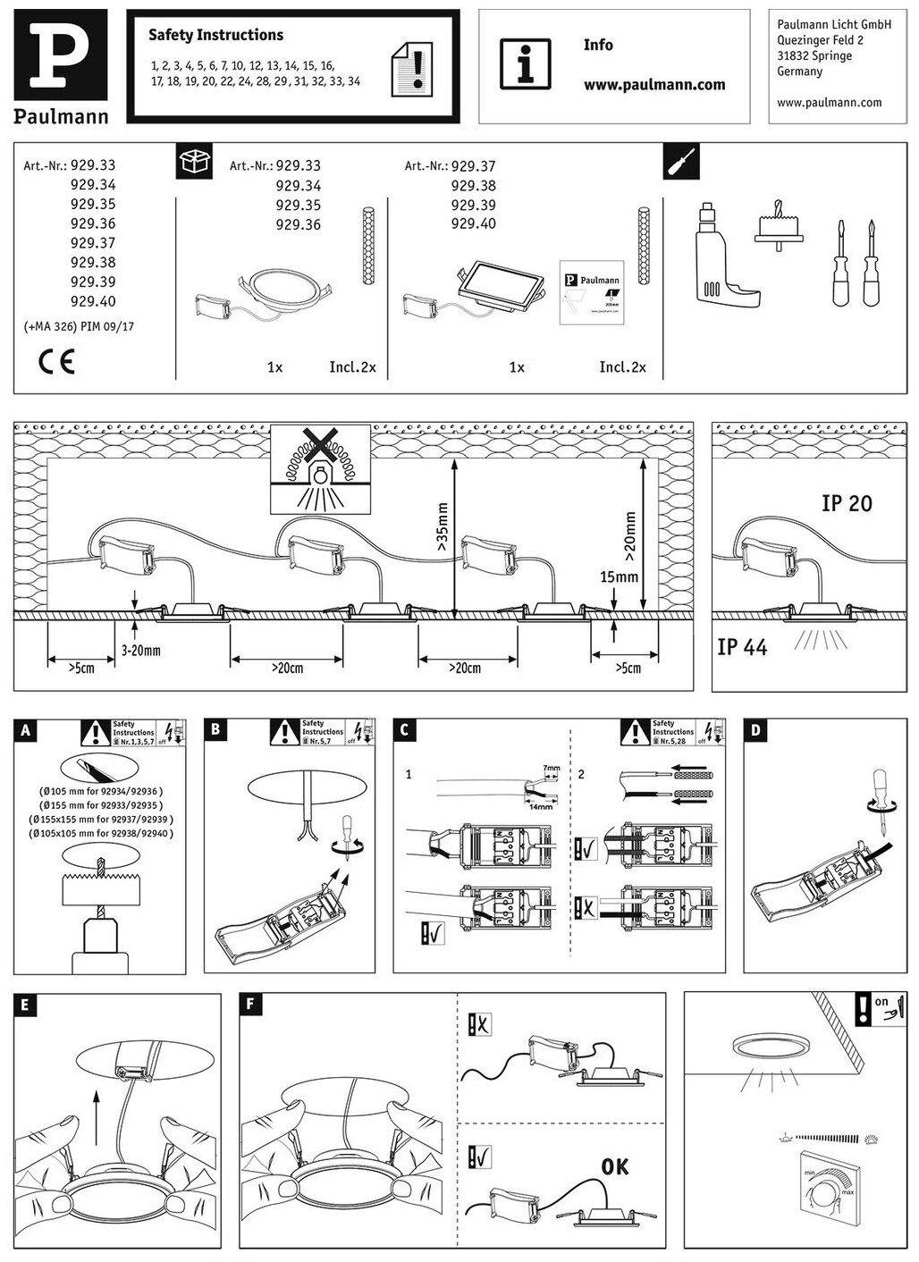 | Комплектация | Встраиваемые светильники Paulmann 92937 |