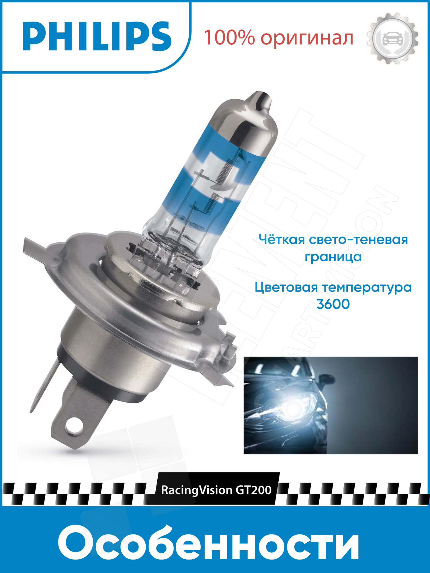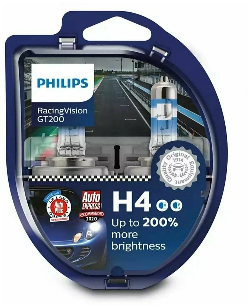 PHILIPS лампа H4 12342 RACING VISION GT200 S2 12342RGTS2, 2шт