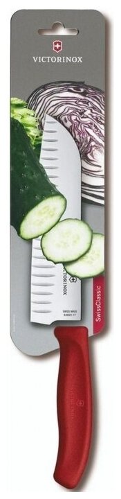 Нож Victorinox кухонный Swiss Classic (6.8521.17B) стальной сантоку лезв.170мм прямая заточка красный блистер 6.8521.17B