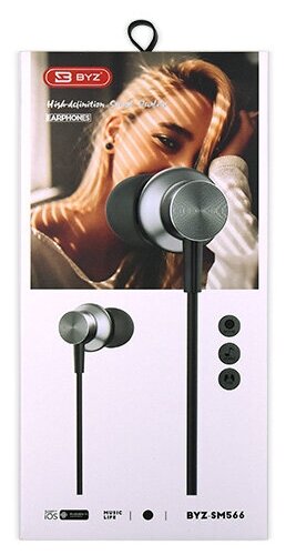 Отзывы на Наушники проводные BYZ SM566 вакуумные с микрофоном, 1,2 метра, серый металлик