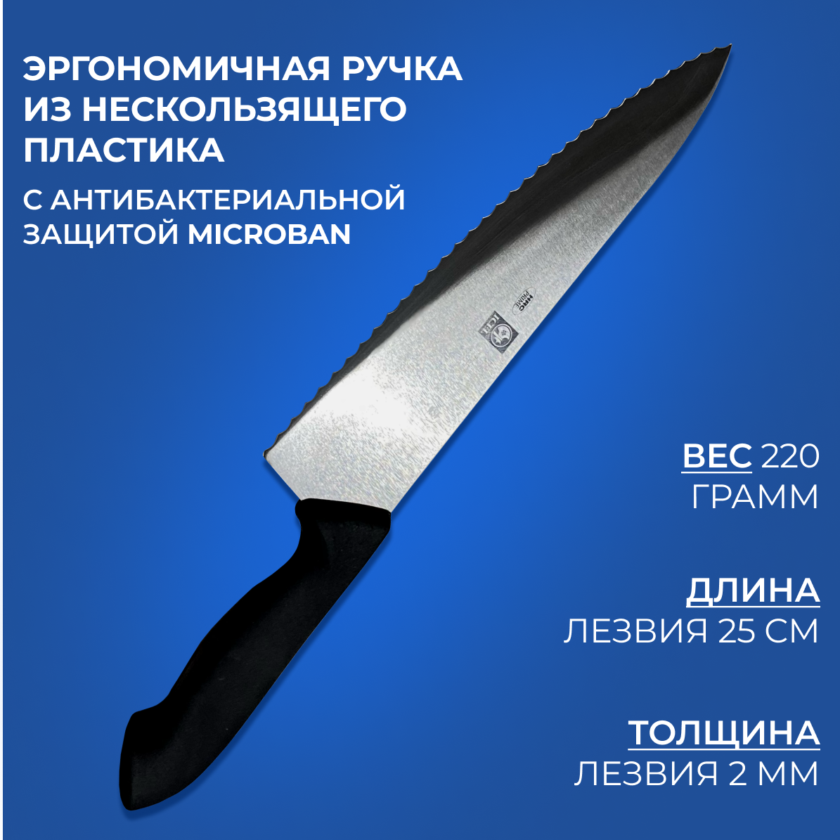 Нож ICEL поварской (шеф-нож) лезвие с волнистой кромкой 25 см, ручка с антибактериальной защитой Microban информация: