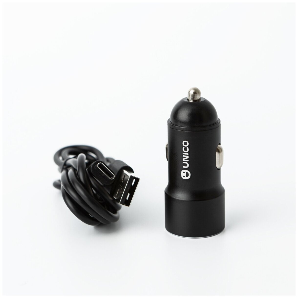 Unico Автомобильное ЗУ, 2xUSB 2.0, 2,4A, вх 12-24В, вых 5В/2.4A, металл, защита от КЗ, вкл кабель micro usb, 1м, черный, RTL BOX информация: