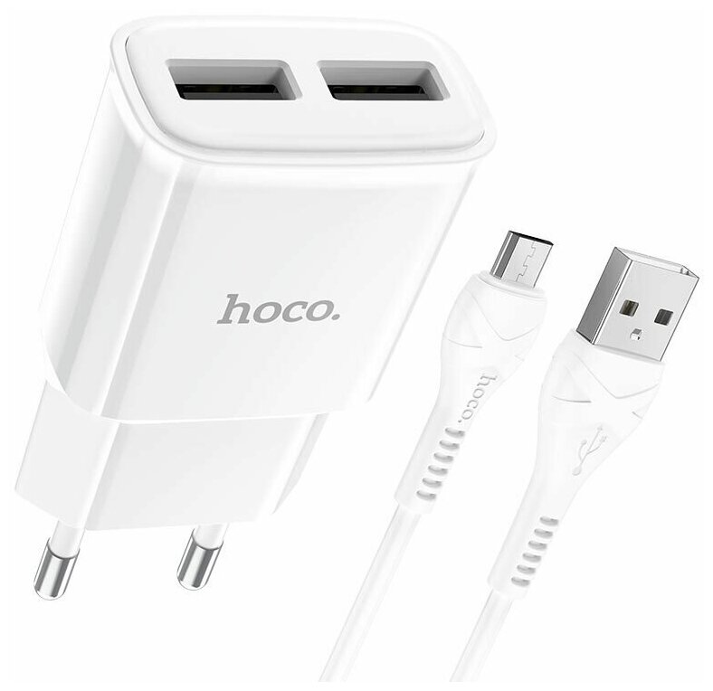 Зарядное устройство 2xUSB 5V-2.4A с кабелем Micro-USB, адаптер сетевой, блок питания для телефона Андроид информация: