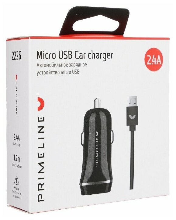 АЗУ 2USB 2.4A+ кабель microUSB 1.2м, черный, Prime Line информация: