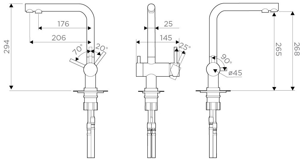 Смеситель для кухни с подключением к фильтру с питьевой водой из нержавеющей стали SUS304 Calorie CAL50116-3