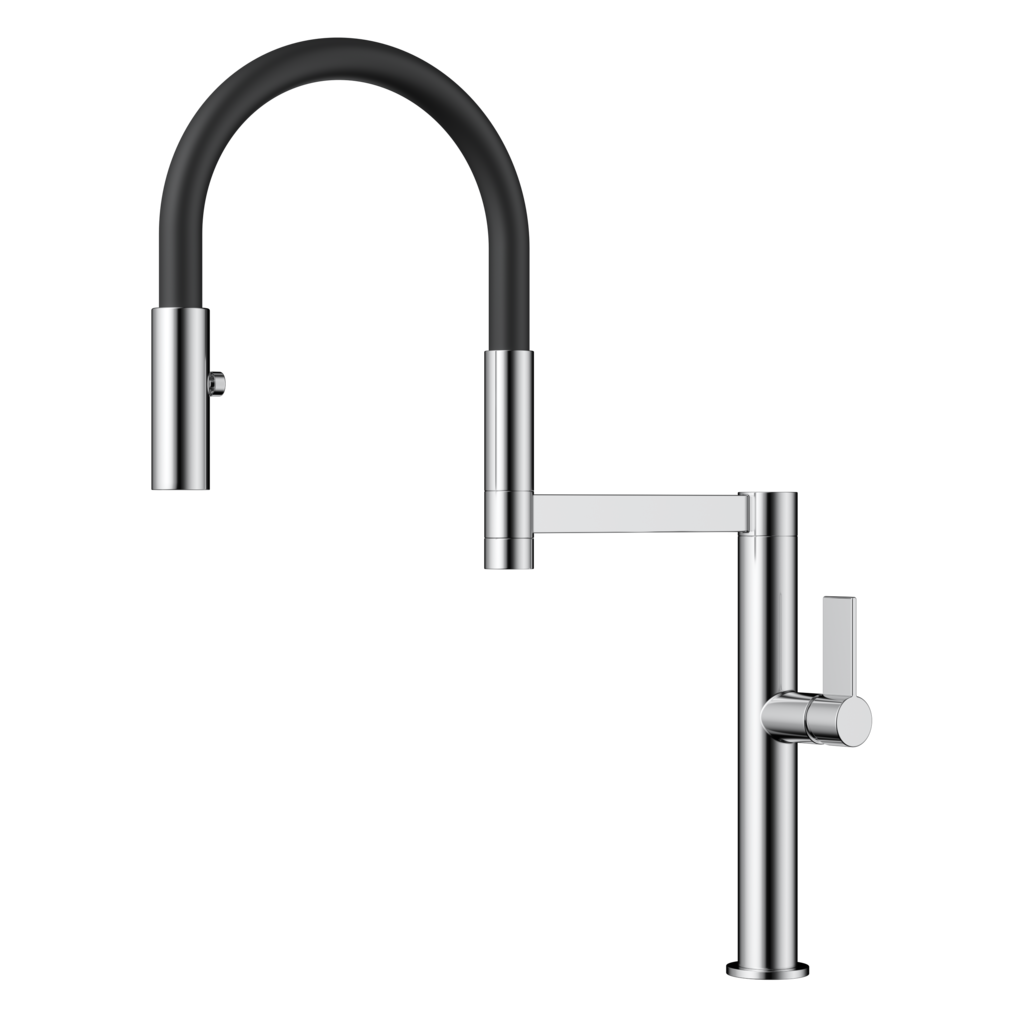 Смеситель для кухни OMOIKIRI Osaka-С-BL с гибким шлангом и кнопкой переключения струя-душ / шланг на магните / хром / черный шланг