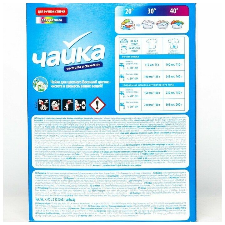 Стиральный порошок ручная стирка Чайка Весенний цветок для цветного 400 г информация: