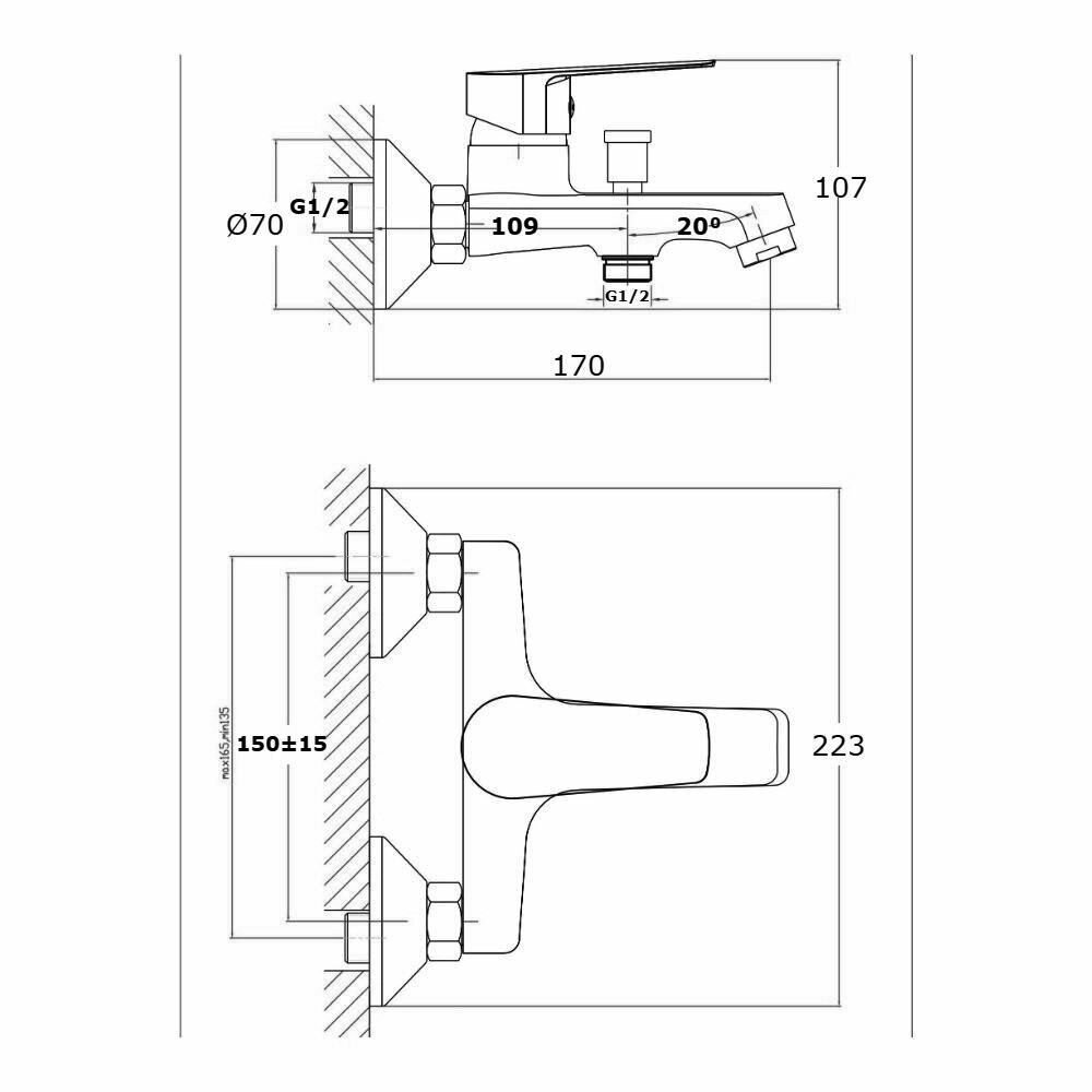 | Комплектация | смеситель, душевая лейка 3 режима, шланг 1500 мм., настенный держатель лейки |