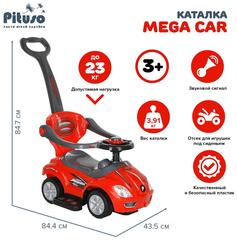 10 цен на Каталка PITUSO Mega Car с бампером, с ручкой (сигнал) Red/Красный/ машинка детская игрушка, толокар, пушкар каталка, детская игрушка в подарок для мальчика и девочки, каталка автомобиль, спорткар