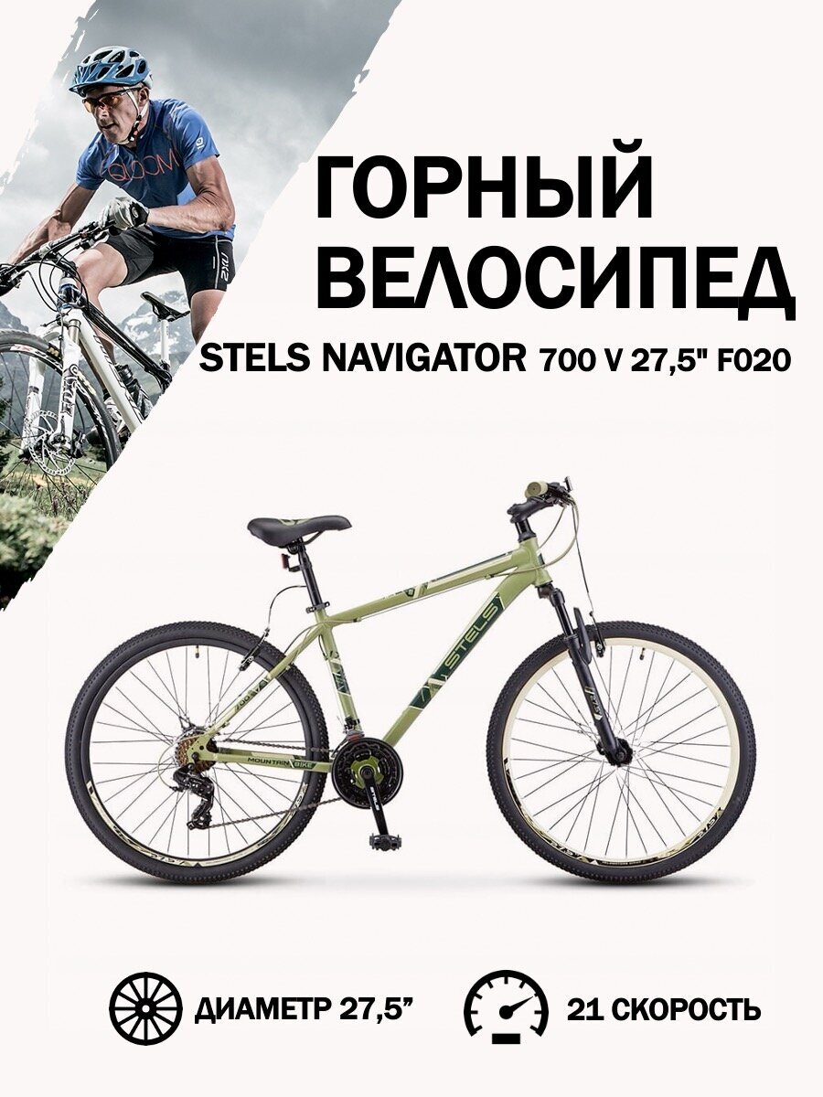 Велосипед горный Stels Navigator 700 V F020 цвет хаки 27.5", рама 21" информация: