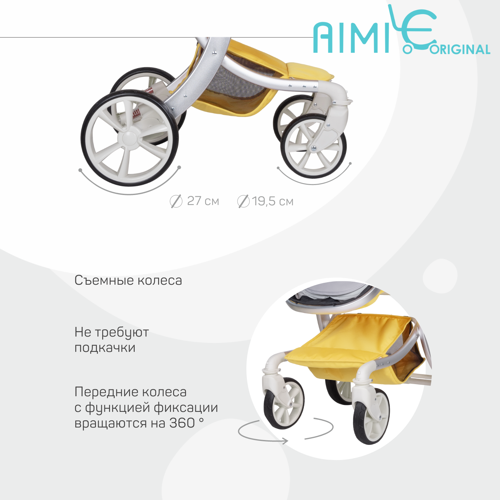 | Колеса | 4 шт., полиуретановые, 19.50-27 см |
