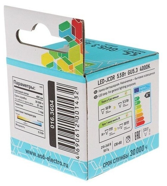 Отзывы на Лампа светодиодная ASD LED-JCDR-STD, GU5.3, JCDR, 5.5 Вт, 4000 К