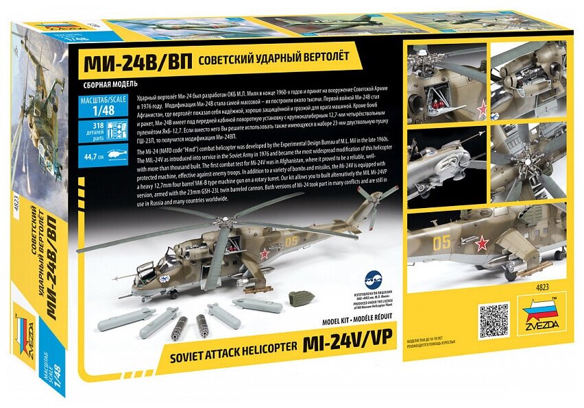 Сборная модель ZVEZDA 1/48 Советский ударный вертолет Ми-24В/ВП 4823