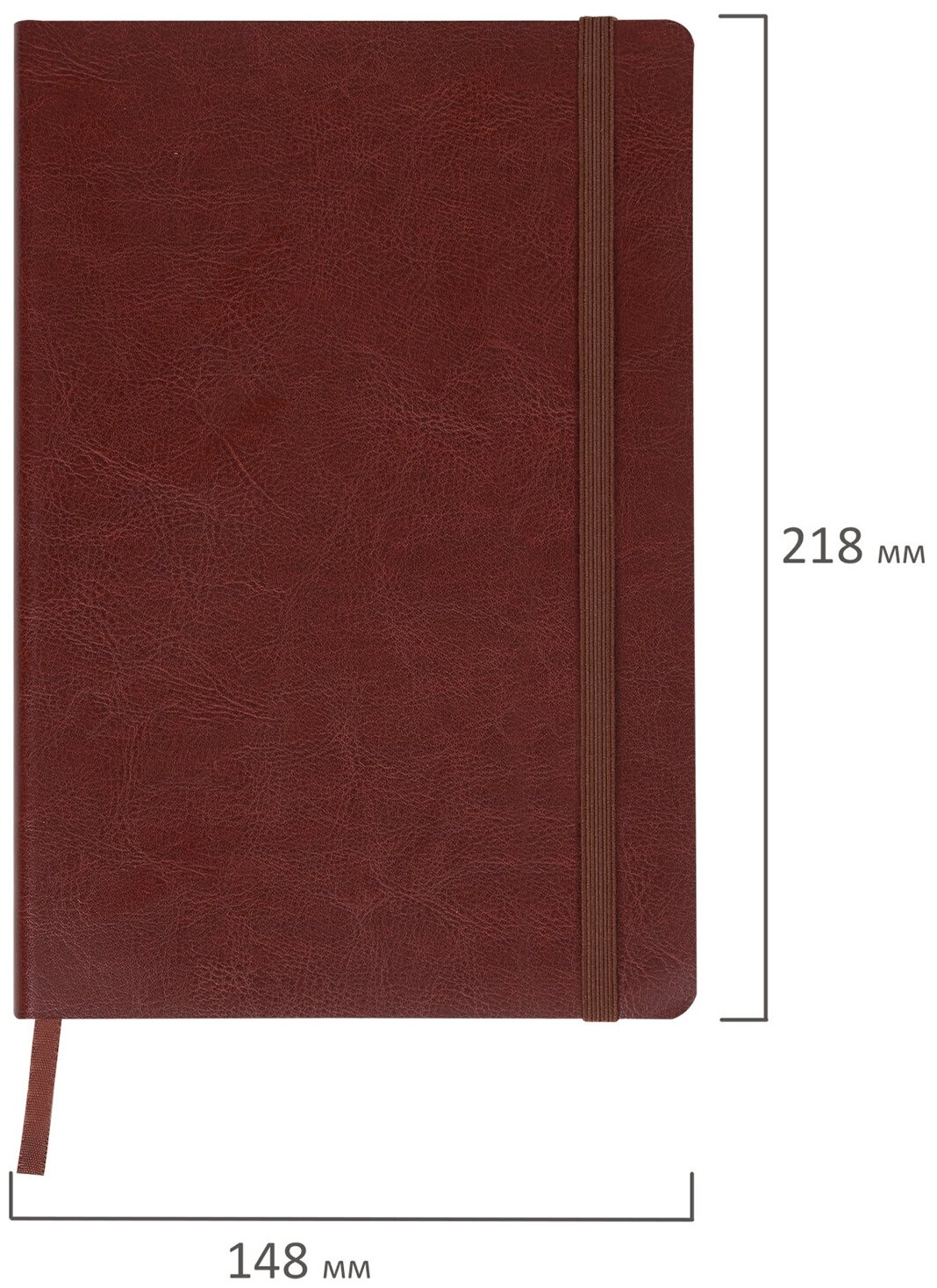 Блокнот А5 (148x218 мм), BRAUBERG "Metropolis Ultra", под кожу, 80 л., резинка, клетка, коричневый, 111023