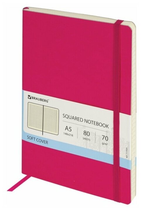 Блокнот А5 148x218мм, BRAUBERG Metropolis Ultra, под кожу, 80л, резинка, клетка, розовый, 111024 информация: