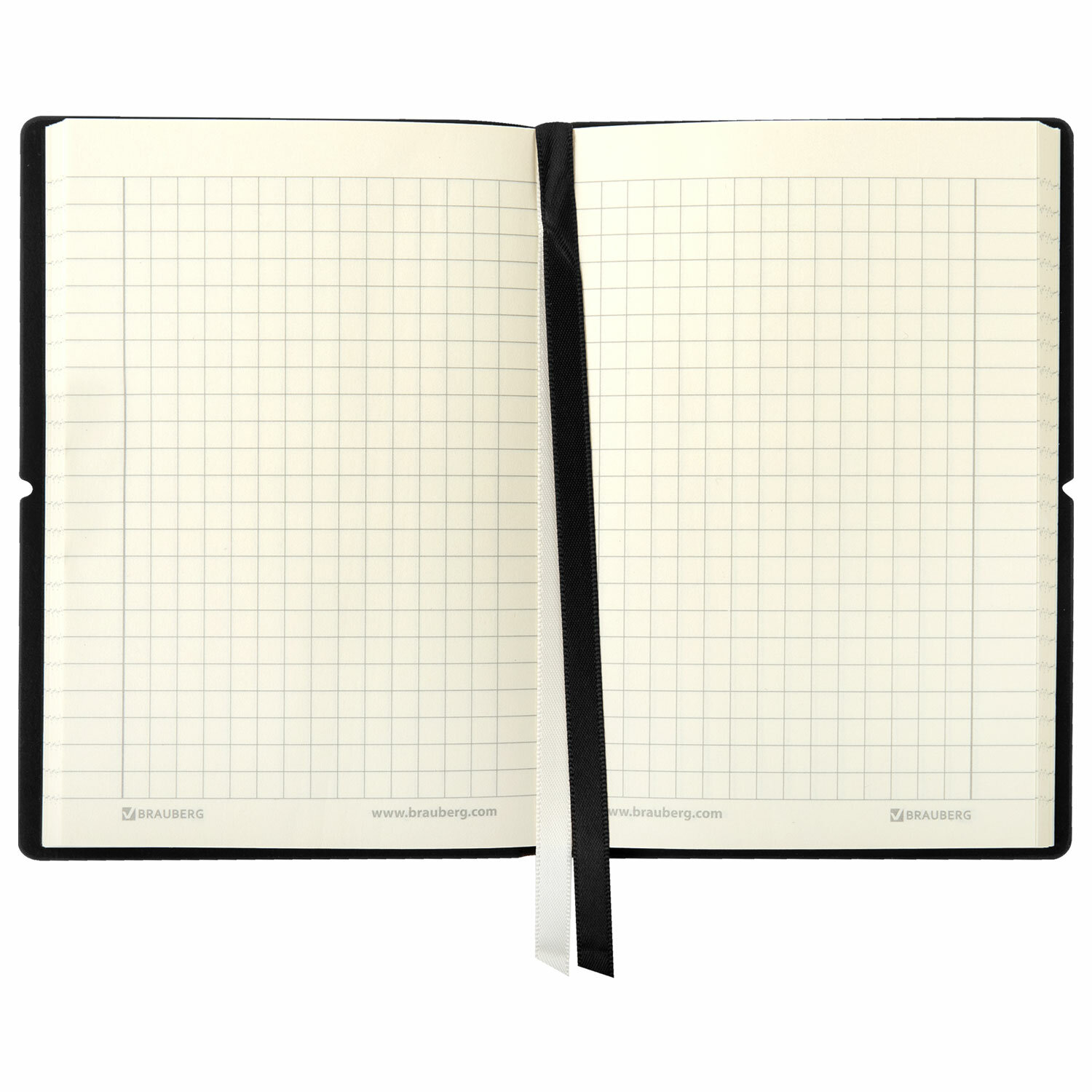 Блокнот малый формат (100×150 мм) А6, BRAUBERG «Black Jack», 128 л., гладкий кожзам, резинка, клетка, черный, 125243 /Квант продажи 1 ед./