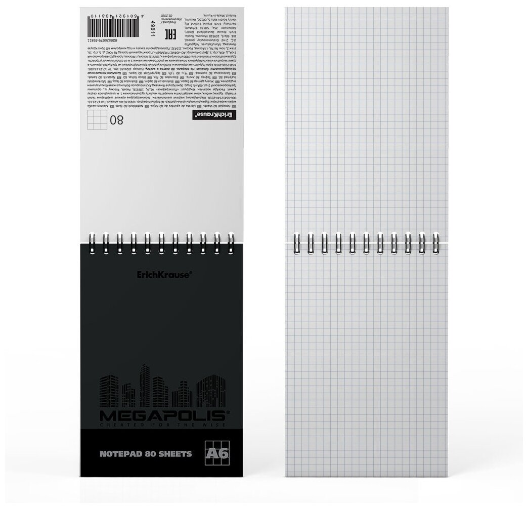 Блокнот на спирали А6, 80л. ErichKrause MEGAPOLIS, клетка, 49811 информация: