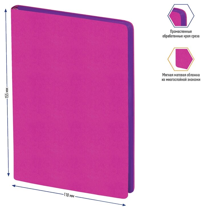 Записная книжка А6 Berlingo "Fuze", 80 листов, клетка, кожзам, цветной срез, фуксия (NB0_87604) информация: