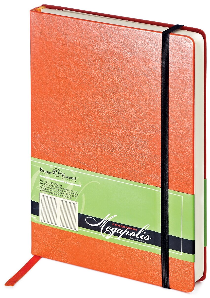 Ежедневник полудатированный, А5 (144 х 215 мм.), "MEGAPOLIS" оранжевый 416 стр., Арт : 3-075/05 информация: