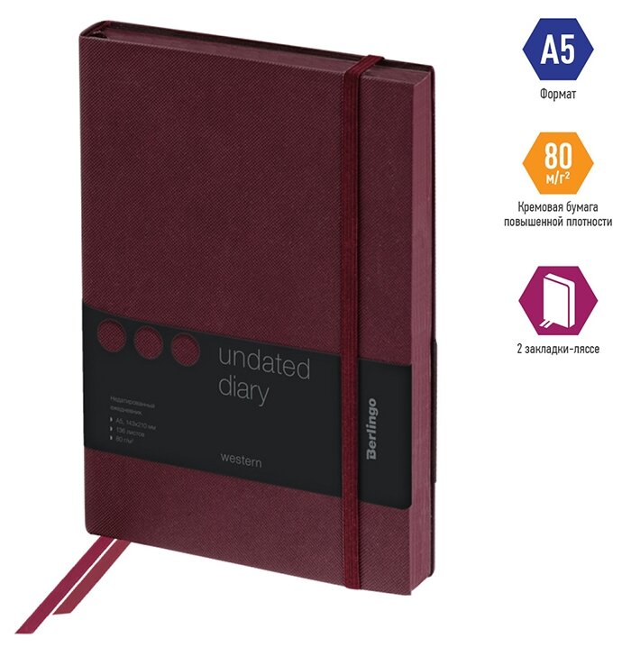 Ежедневник недатированный, А5, 136л, Berlingo "Western", с резинкой 1 074 ₽