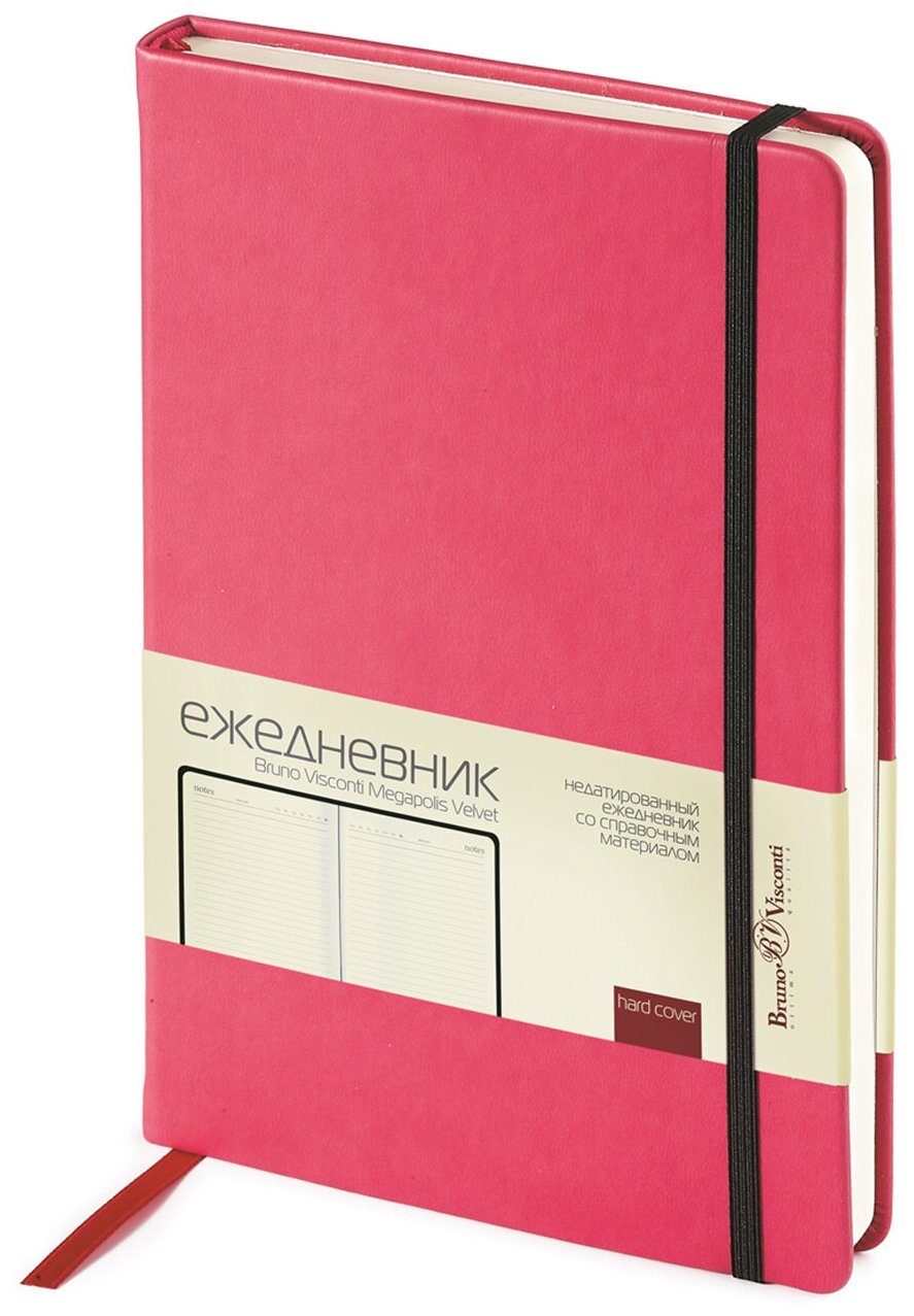 Ежедневник BrunoVisconti недатированный, А5 (142 х 214 мм.), "MEGAPOLIS VELVET" фуксия 320 стр., Арт. 3-468/12, обложка в ассортименте информация: