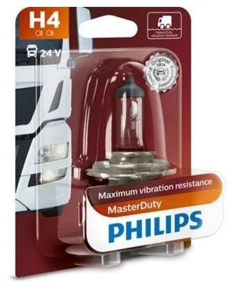 Лампа Галогенная Для Грузовых Автомобилей Блистер 1Шт H4 24V 75/70W P43t-38 Masterduty (Высокая Вибростойкость) Philips арт. ...