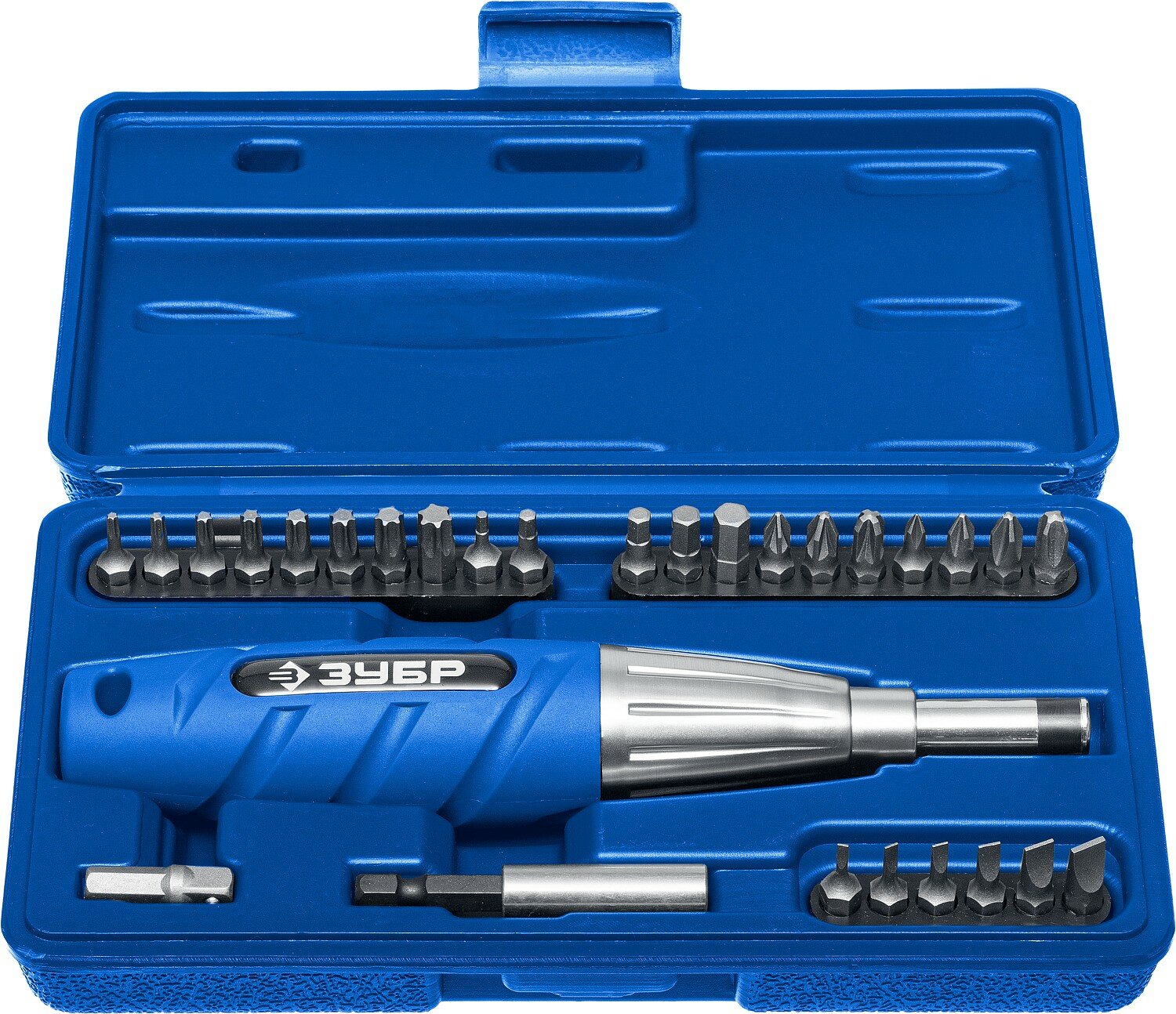 Набор ЗУБР: Биты "МХ-32", CR-V, в компактном боксе с эластичными противоударными, противоскользящими вставками, магнитный адаптер с фиксатором
