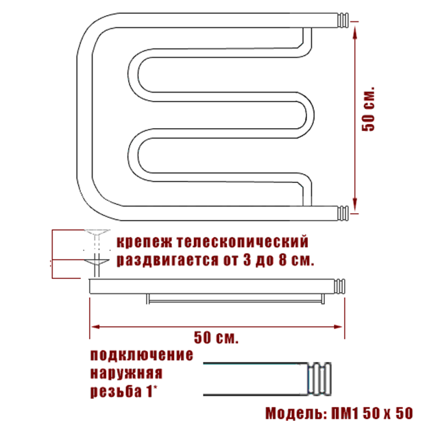 Полотенцесушитель АКВАДРАЙВ водяной М-образный 3/4" 500х400 сталь