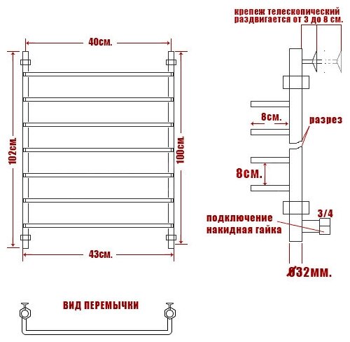 | Габариты (ВхШхГ) | 100x40x8.5 см |