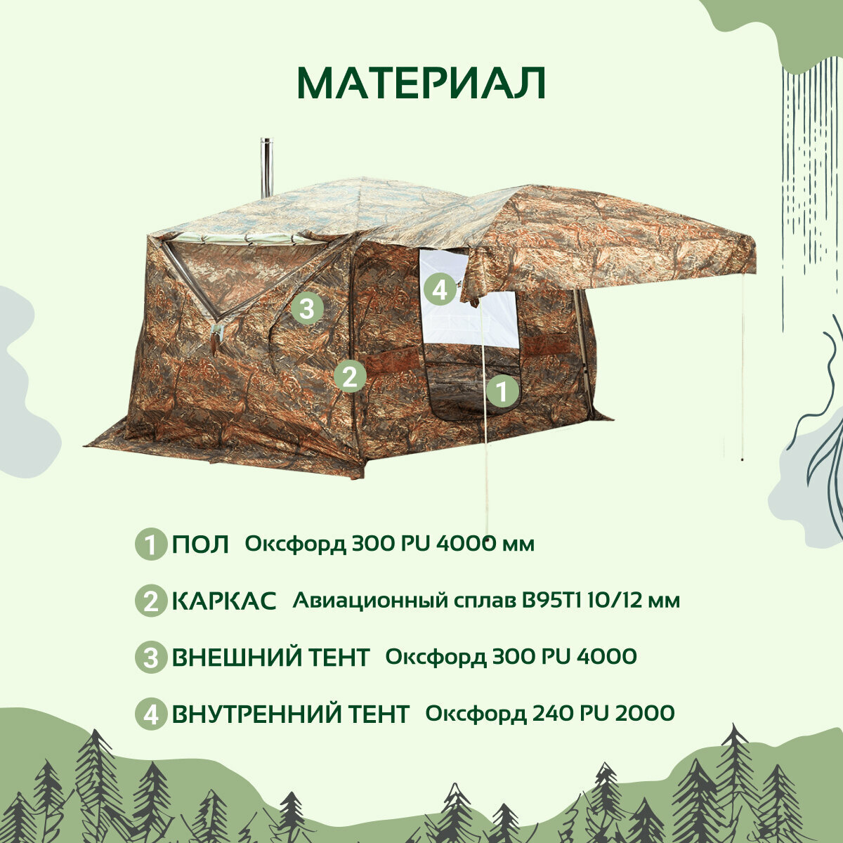 | Материал тента | полиэстер (Оксфорд 300 PU 4000) |