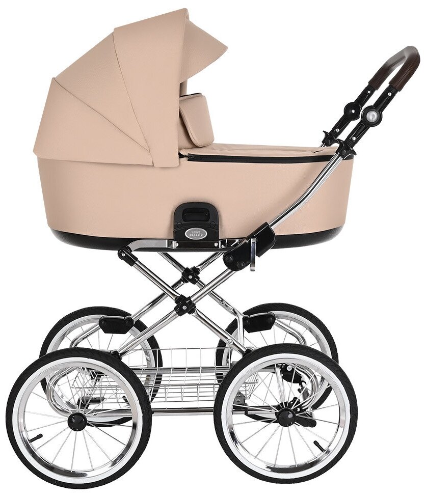 Коляска Roan Bass Next Classic короб Beige/Chrome/d14/руч.Тем.Коричневый