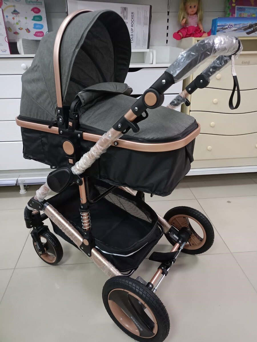 Детская коляска-трансформер 3 в 1 Wisesonle Q3, серый лен информация: