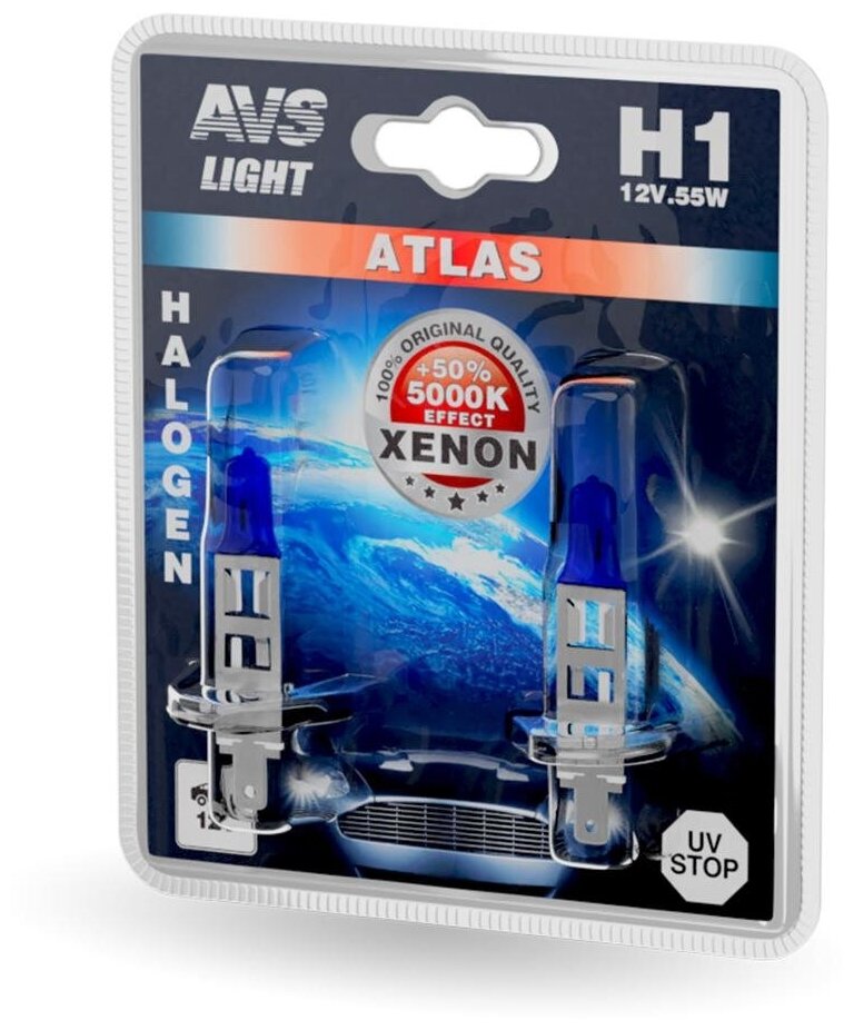 Лампа галогенная AVS ATLAS/5000К/H1.12V.55W. комплект-2 шт. информация: