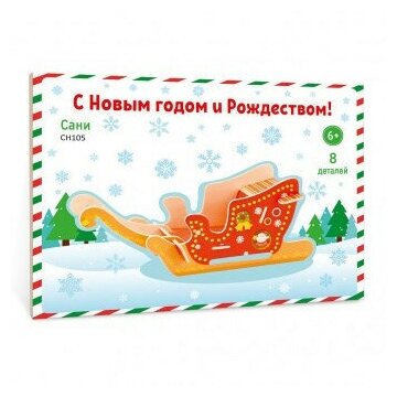 Пазлы деревянные 3D 8 элементов "С Новым годом и Рождеством. Сани" (СН105, 54689) в коробке Геодом (1шт) информация: