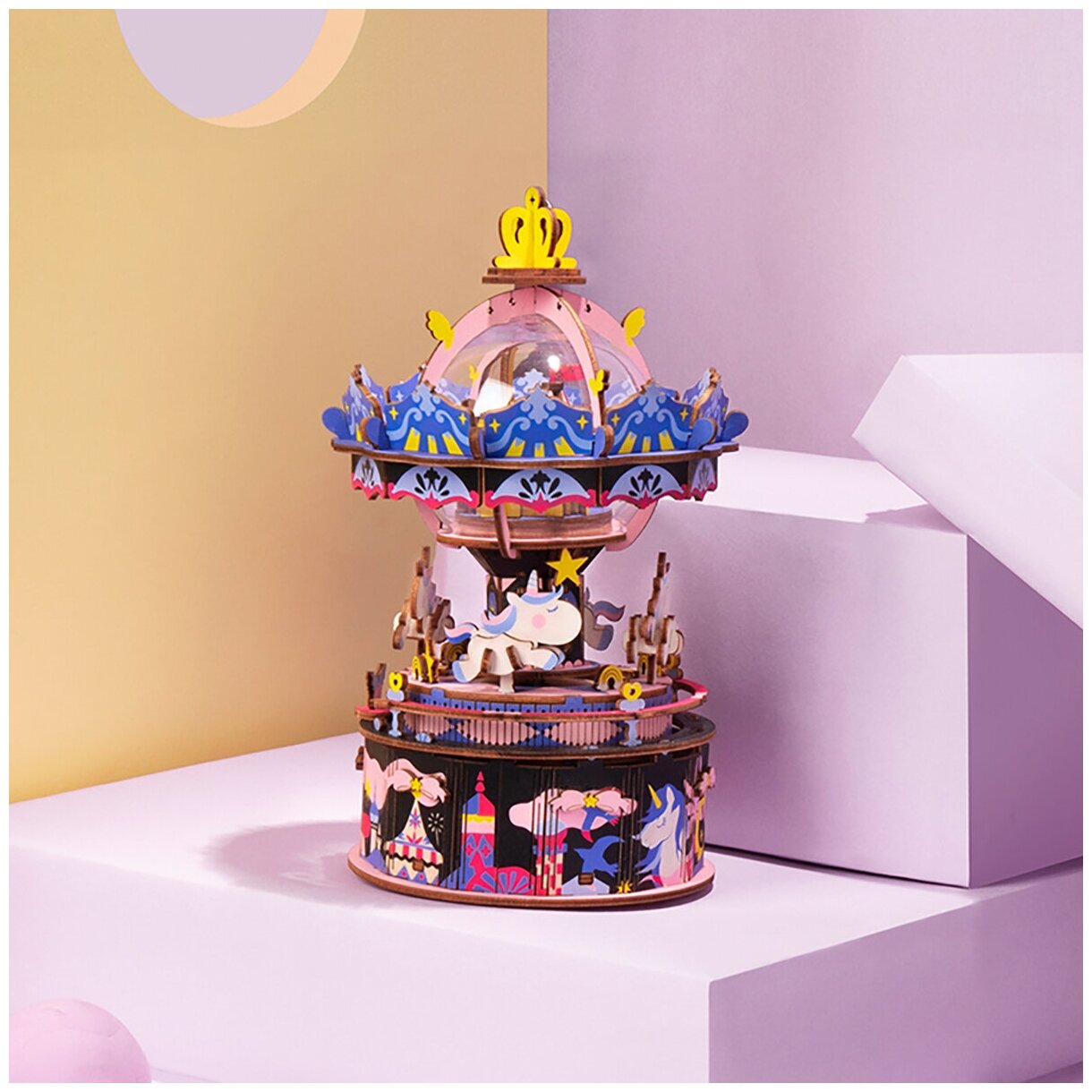 10 цен на Деревянный музыкальный конструктор Robotime карусель Starry Night