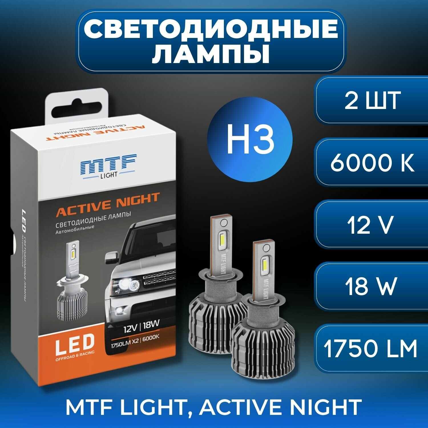 Светодиодные лампы MTF light Active Night H3 6000K (2 лампы) информация: