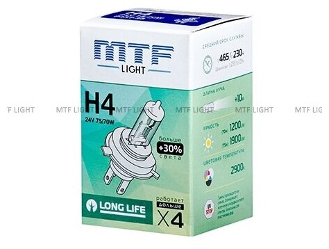 Галогенная лампа MTF Light автомобильная H4 24V 75/70W LONG LIFE x4 информация: