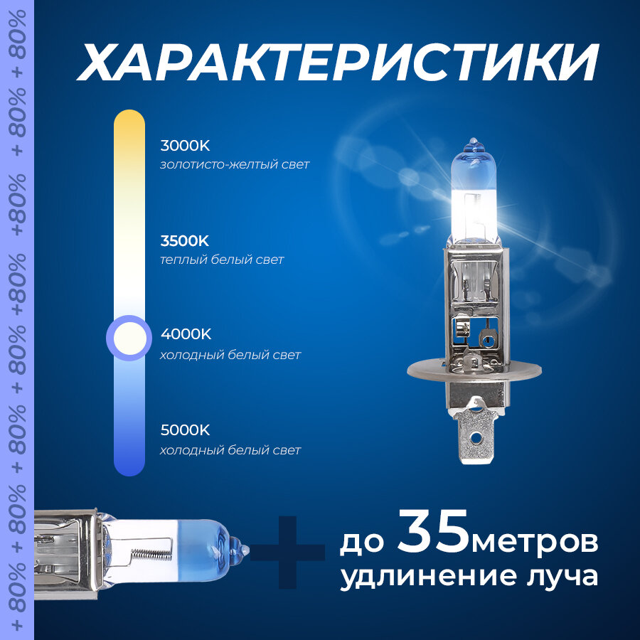 Автолампа H1 12v 55w (P14,5s) Kraft Pro +80 more light (2шт. блистер) KRAFT / арт. KT700203 - (1 шт)