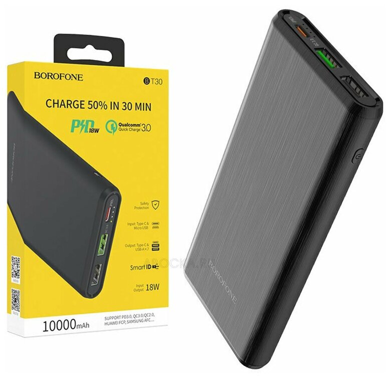 Внешний аккумулятор, power bank, BT30 3A, 10000 мАч, черный, светодиодный индикатор информация:
