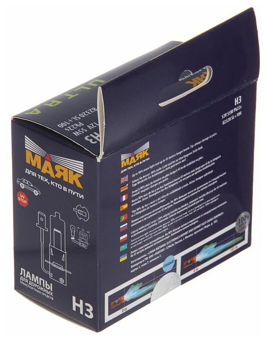 Лампа автомобильная "маяк ультра", Super Light+100%, H3, 12 В, 55 Вт информация: