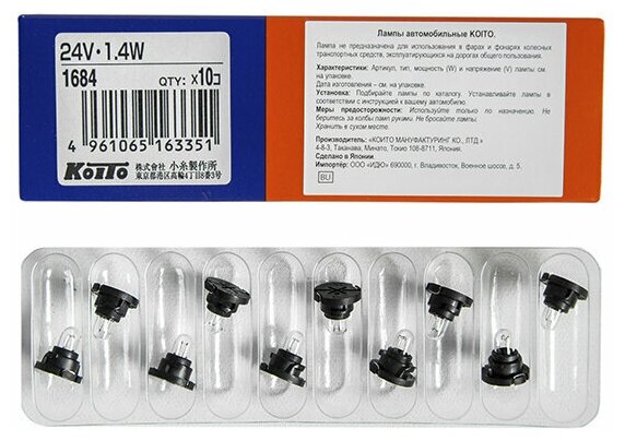 Отзывы на KOITO 1684 Лампа дополнительного освещения Koito 24V 1.4W - с патроном T4.7