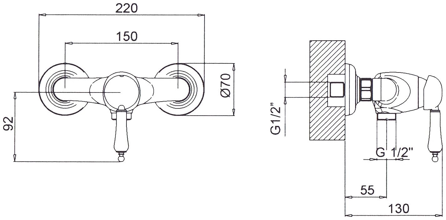Смеситель Margaroli Classica RU1005AA01BR для душа информация: