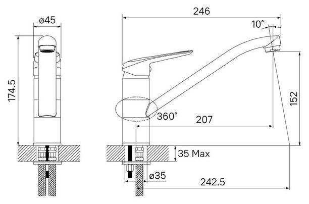 Смеситель для кухни, черный матовый, Male, IDDIS, MALBL00i05 информация: