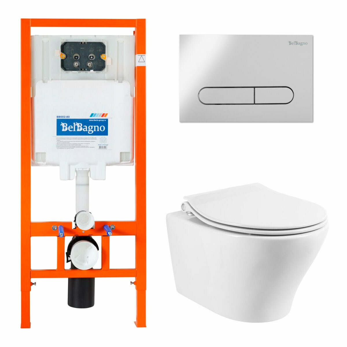 Инсталляция в комплекте с унитазом BelBagno Uno c сиденьем и кнопкой смыва BB3105CHR/SC/BB002-80/BB005-PR-CHROME
