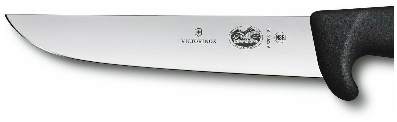 Нож мясника / нож для забоя VICTORINOX Fibrox с лезвием из нержавеющей стали 18 см и с безопасной рукоятью из пластика чёрного цвета информация: