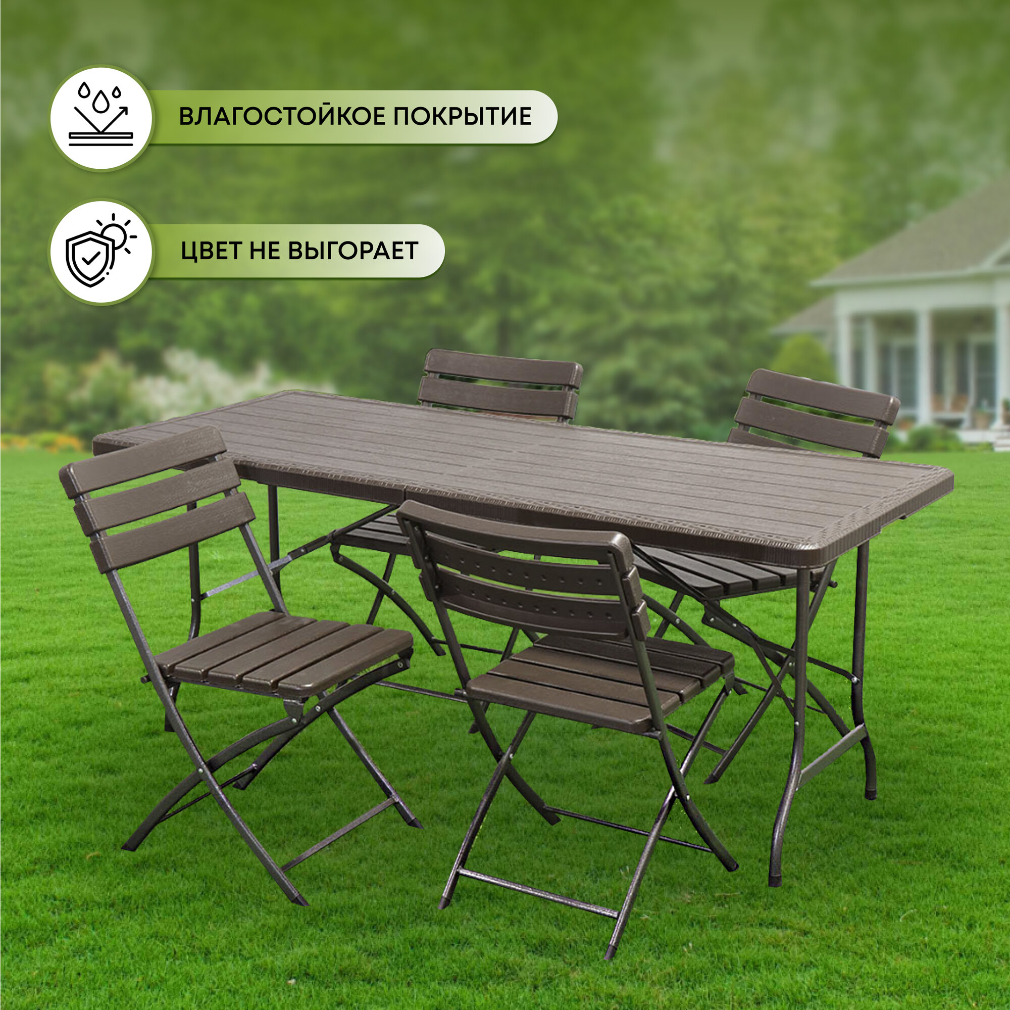 Мебель садовая Green Days, Уют, коричневая, стол, 180х75 см, 4 стула информация:
